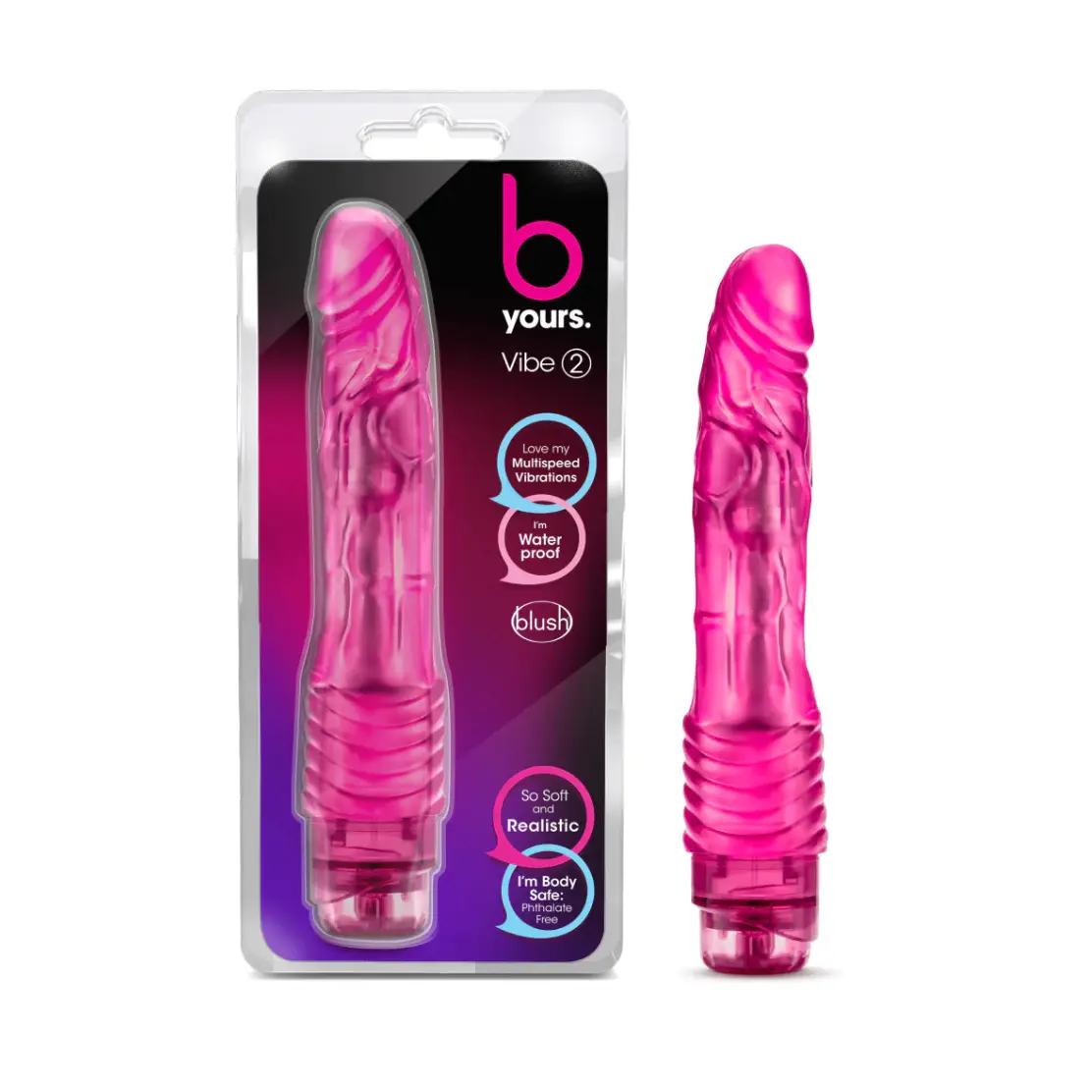 Experience lifelike stimulation with the B Yours Vibe #2, a beautifully detailed 9-inch vibrating dildo crafted for realistic pleasure with just the right amount of give. Thanks to FlexiShaftâ„¢ technology, the shaft is firm enough to satisfy but flexible enough to bend with your body for total comfort.