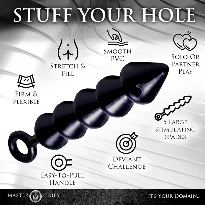 Push your limits with these Extra Large Spade-Shaped Anal Beads, designed to deliver intense, full-bodied pleasure. Each flared bead tapers for smoother insertion, while the spade shape offers a unique, pressure-filled sensation as you slide deeper. The slick, flexible-yet-firm TPR material glides in easily, and the sturdy O-ring handle ensures a safe, satisfying retrieval—each pop delivering a powerful jolt of pleasure.