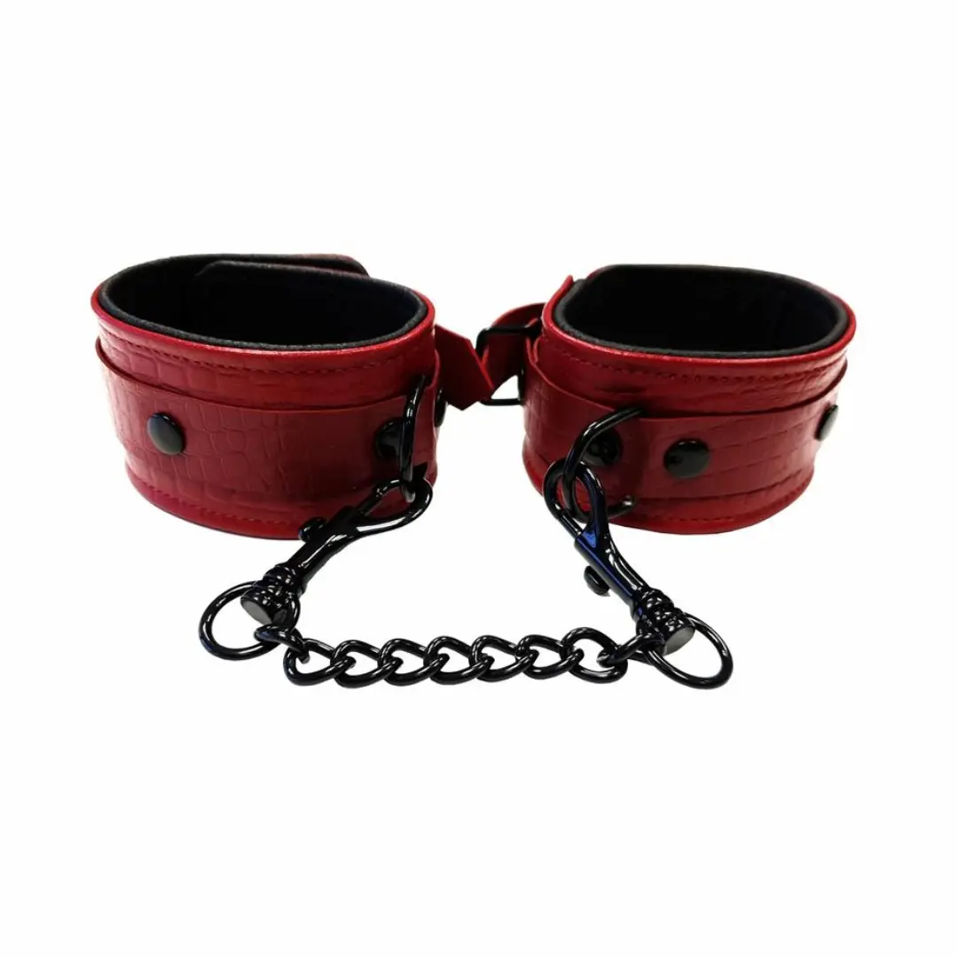 Elevate your bondage play with these exquisite leather and suede wrist cuffs from Rouge Garments. Designed for luxurious restraint, these cuffs combine a sturdy leather exterior with a soft suede interior, ensuring both comfort and control during extended sessions.