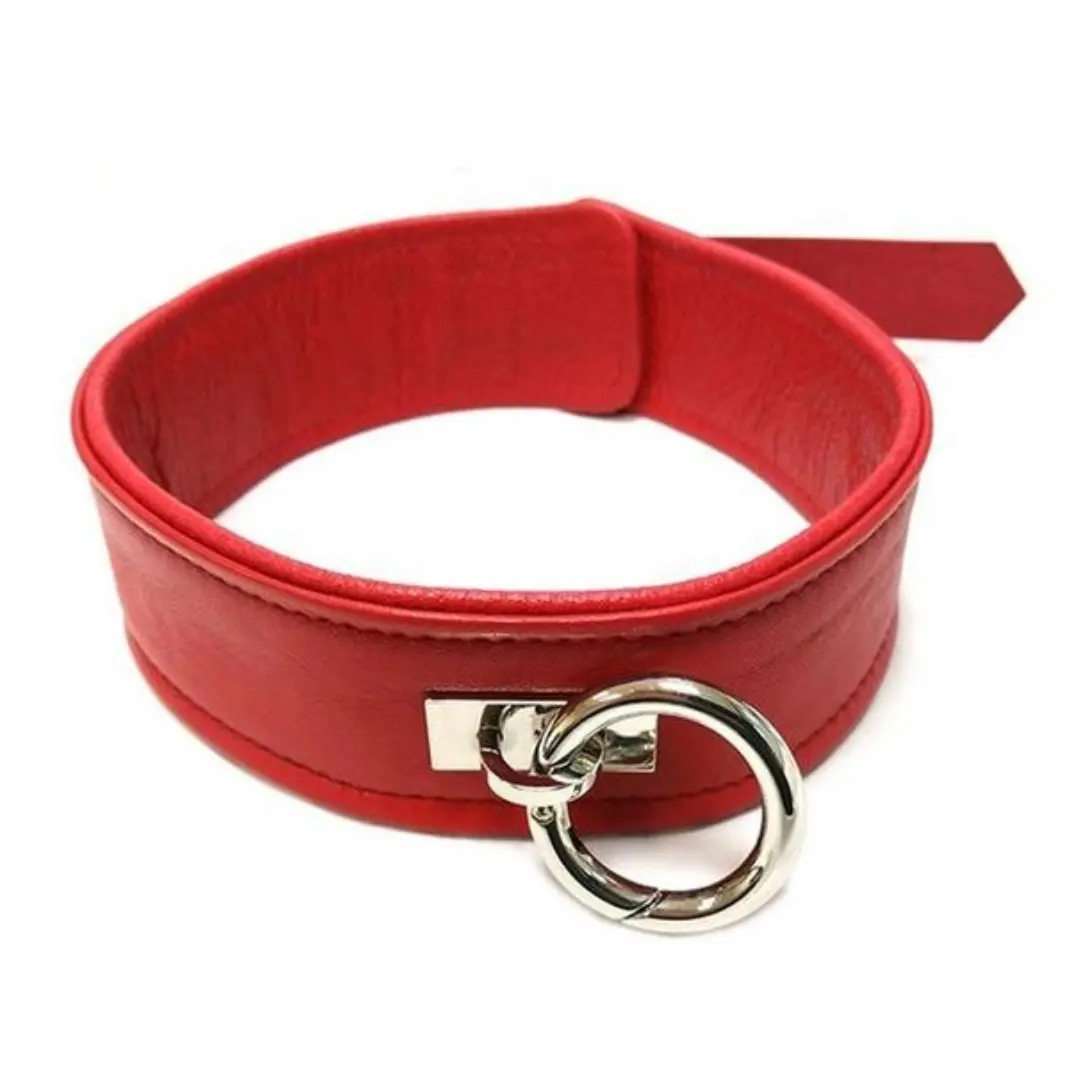 Red Leather Bondage Collar with Removable O-Ring – Bold, Sturdy, and Adjustable