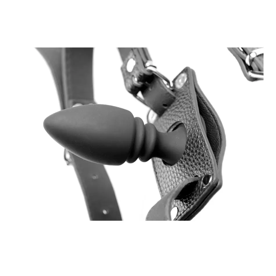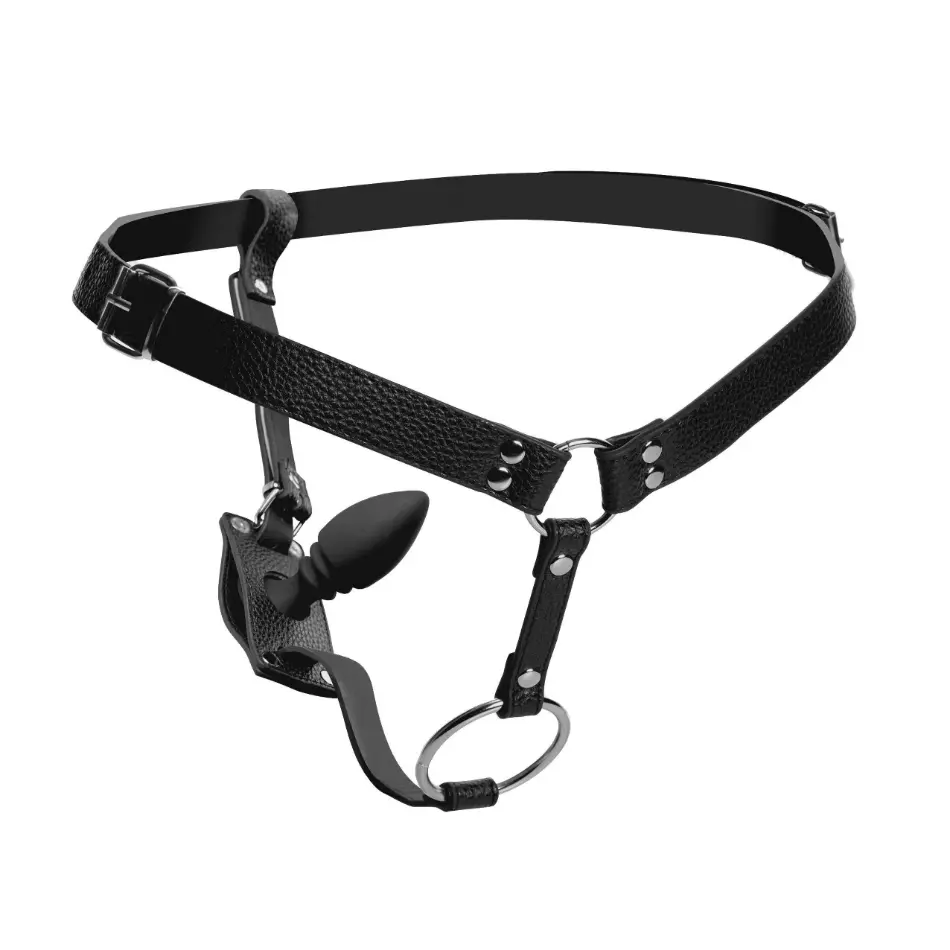 This plug harness doesn’t just dominate—it delivers. The removable plug features a strong suction cup base for versatile solo or partner play outside the harness. Perfect for power exchange, humiliation, or edging play. Let them squirm… and beg for more.