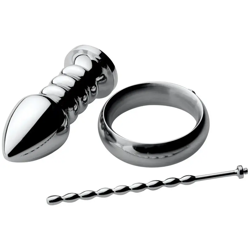 • Includes cock ring, beaded sound, and ribbed anal plug