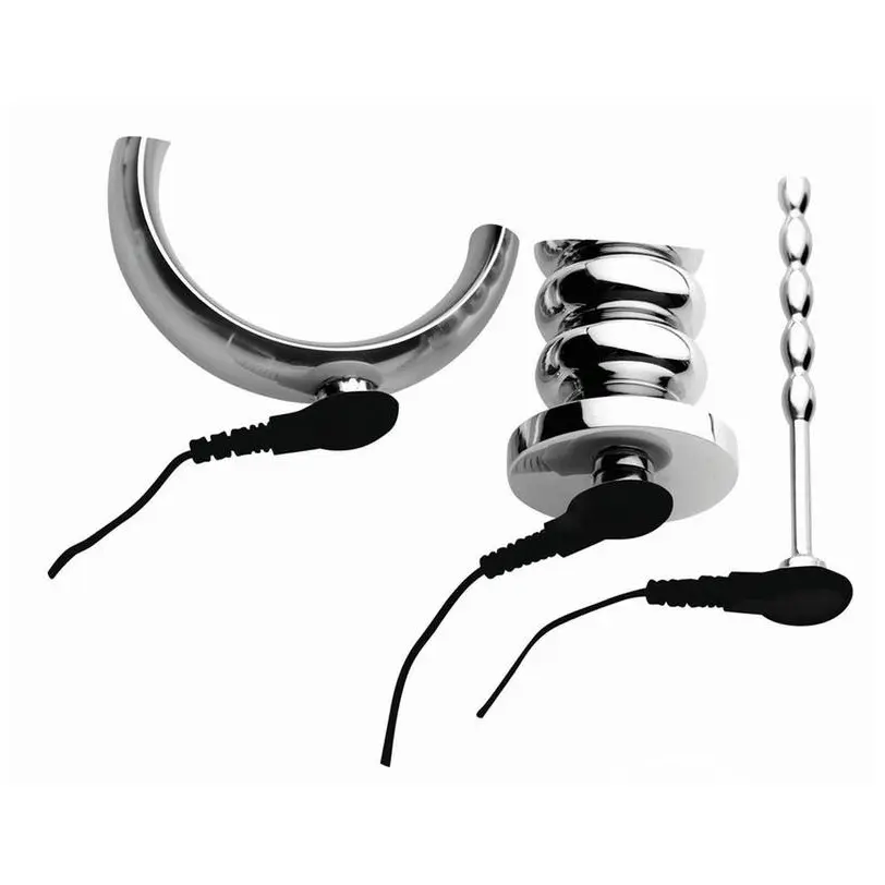 • Three stainless steel attachments for intense electro play